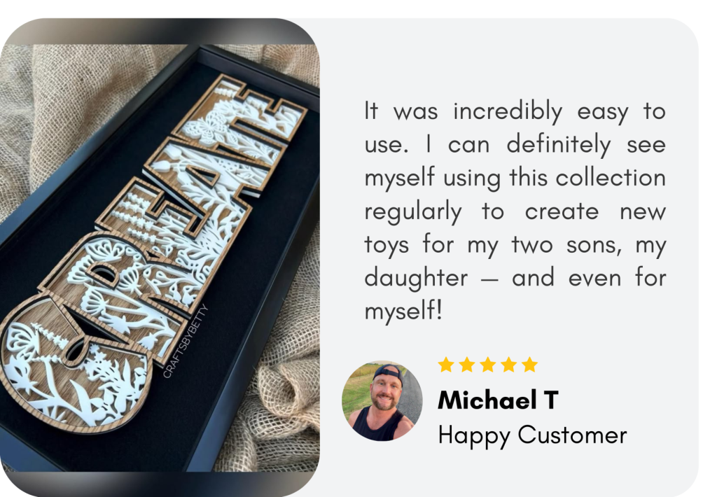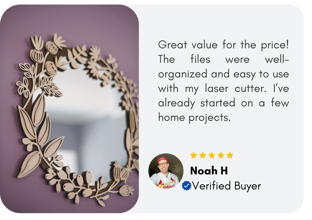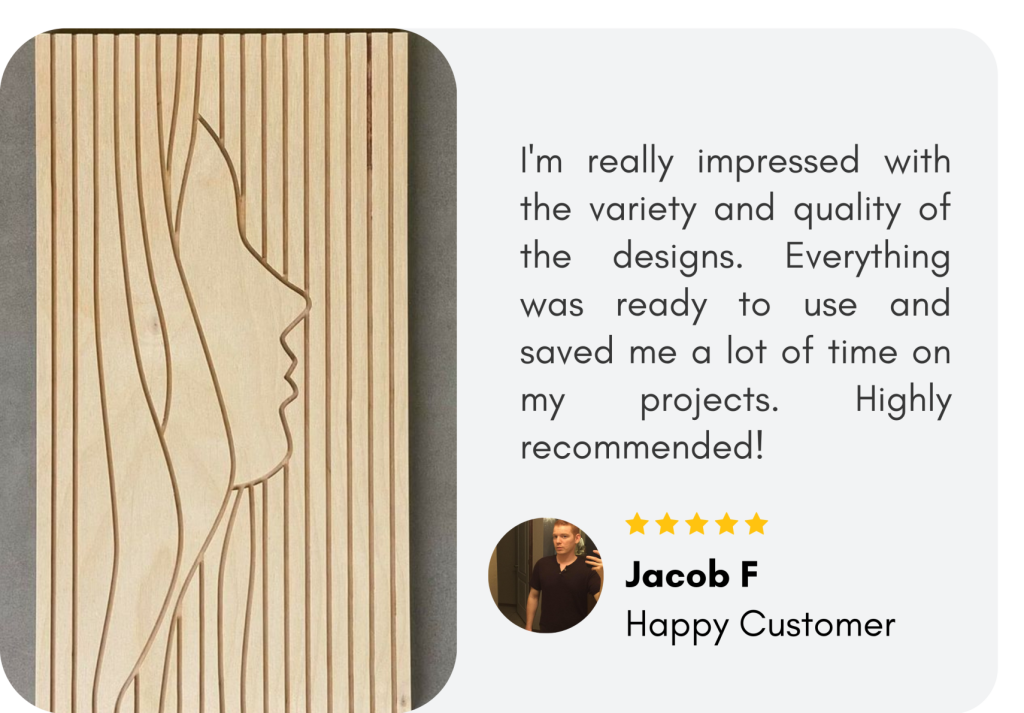 You’re not alone: Over 1,200 creators already use our laser-ready files — no more wasted time or incorrect dimensions. Just precise, professional results every time.